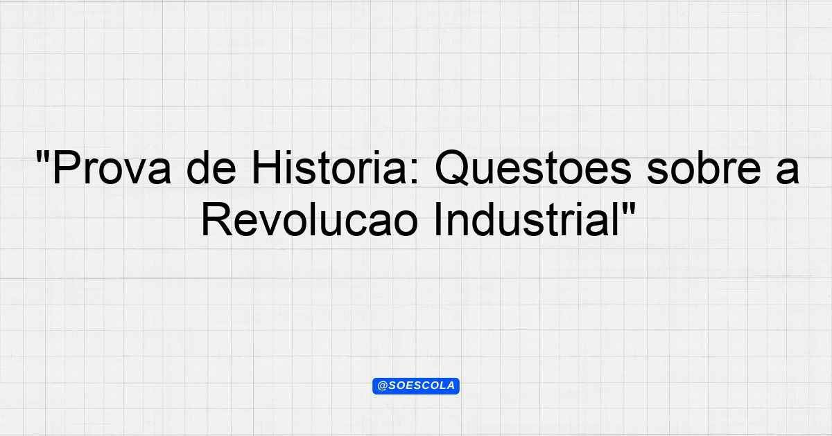 Continue lendoTema: Revolução IndustrialEtapa/Série: 8º anoDisciplina: HistóriaQuestões: 10 Prova de História: Revolução Industrial Nome do Aluno: ________________________ Data: ________________ — Questões