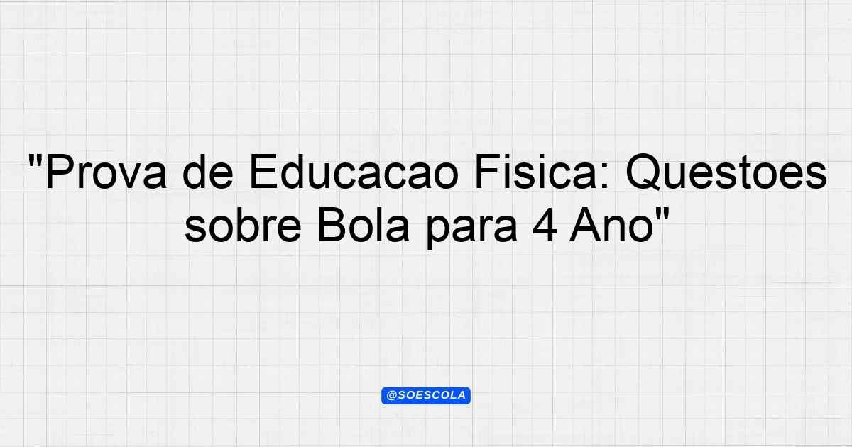 Continue lendoTema: BOLAEtapa/Série: 4º anoDisciplina: Educação FísicaQuestões: 8 Prova de Educação Física – 4º Ano Tema: BOLA Instruções: Leia atentamente cada