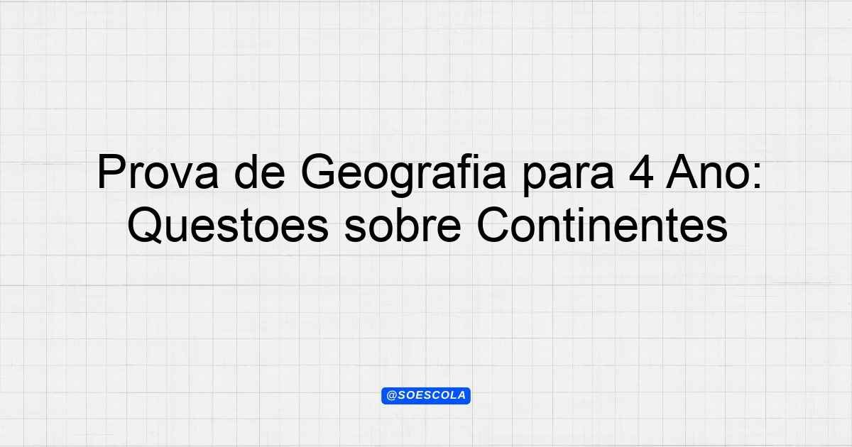 Continue lendoTema: CONTINENTESEtapa/Série: 4º anoDisciplina: GeografiaQuestões: 5 Prova de Geografia: CONTINENTES Nome do Aluno: _____________________________ Data: ____/____/______ — Instruções: Leia atentamente