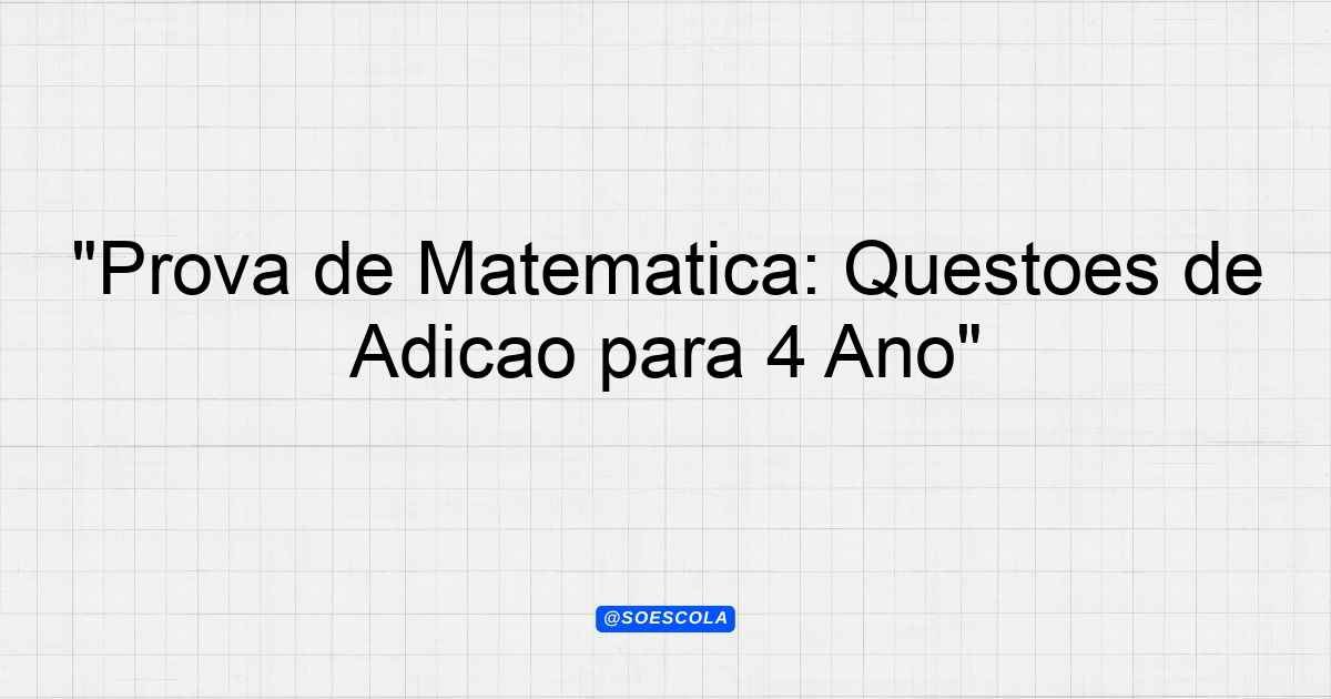 Continue lendoTema: ADIÇAOEtapa/Série: 4º anoDisciplina: MatemáticaQuestões: 5 Prova de Matemática – 4º ano Tema: Adição Instruções: Leia atentamente cada questão e