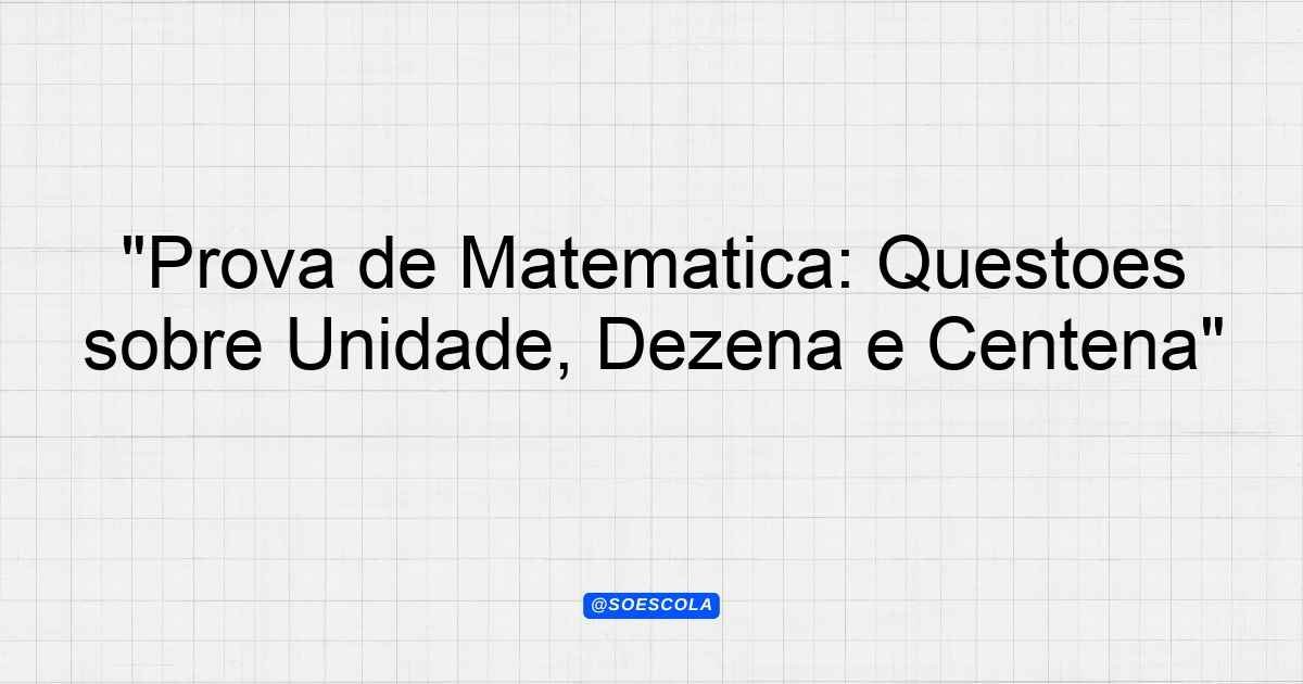 Continue lendoTema: UNIDADE DEZENA CENTENAEtapa/Série: 4º anoDisciplina: MatemáticaQuestões: 5 Prova de Matemática: Unidade, Dezena e Centena Aluno(a): ________________________ Data: ________________ Instruções:
