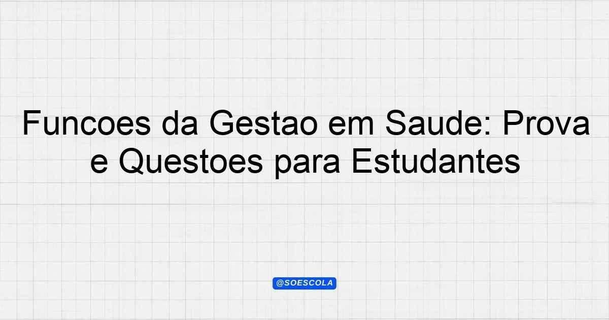 Continue lendoTema: Funções da Gestão em SaúdeEtapa/Série: 2º anoDisciplina: Formação Técnica e ProfissionalQuestões: 5 Prova: Funções da Gestão em Saúde Disciplina: