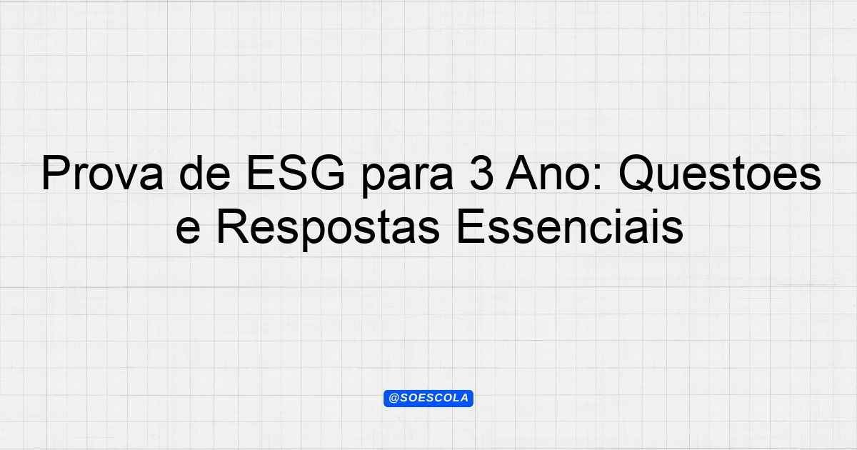 Continue lendoTema: esgEtapa/Série: 3º ano – Ensino MédioDisciplina: Formação Técnica e ProfissionalQuestões: 3 Prova sobre o Tema ESG – 3º Ano