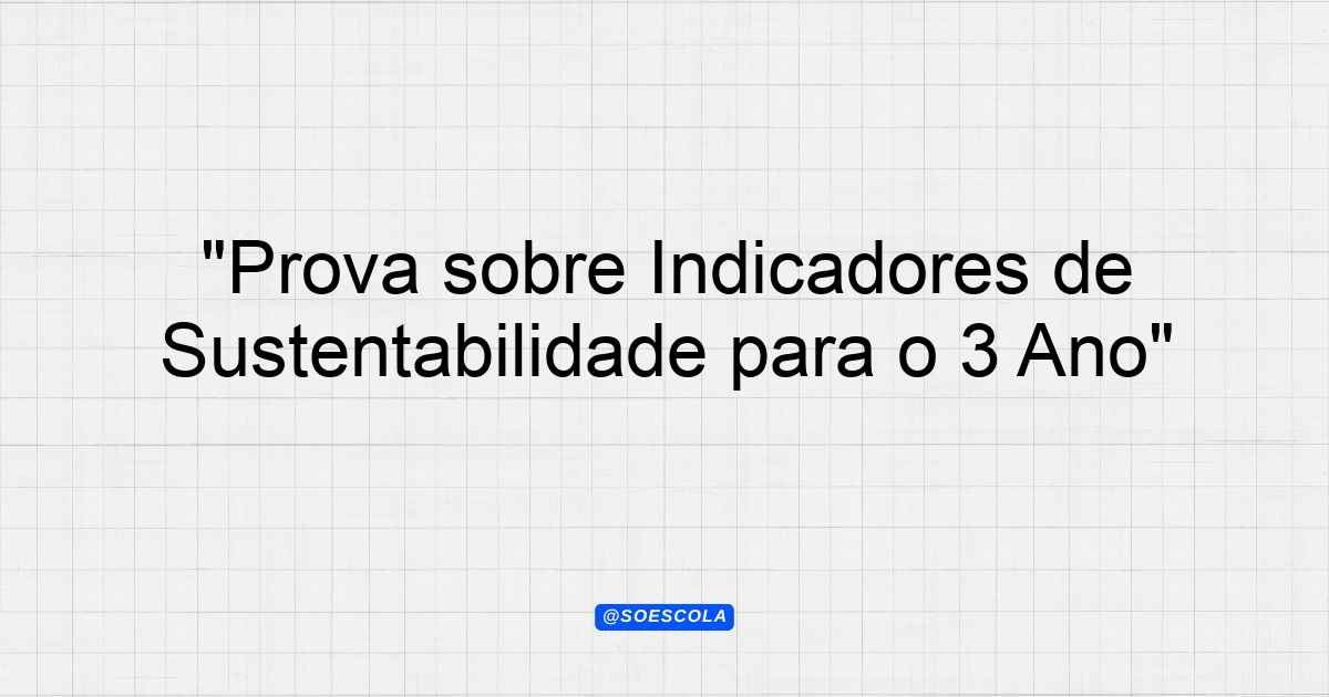 Continue lendoTema: indicadores de sustentabilidadeEtapa/Série: 3º ano – Ensino MédioDisciplina: Formação Técnica e ProfissionalQuestões: 4 Prova: Indicadores de Sustentabilidade Disciplina: Formação