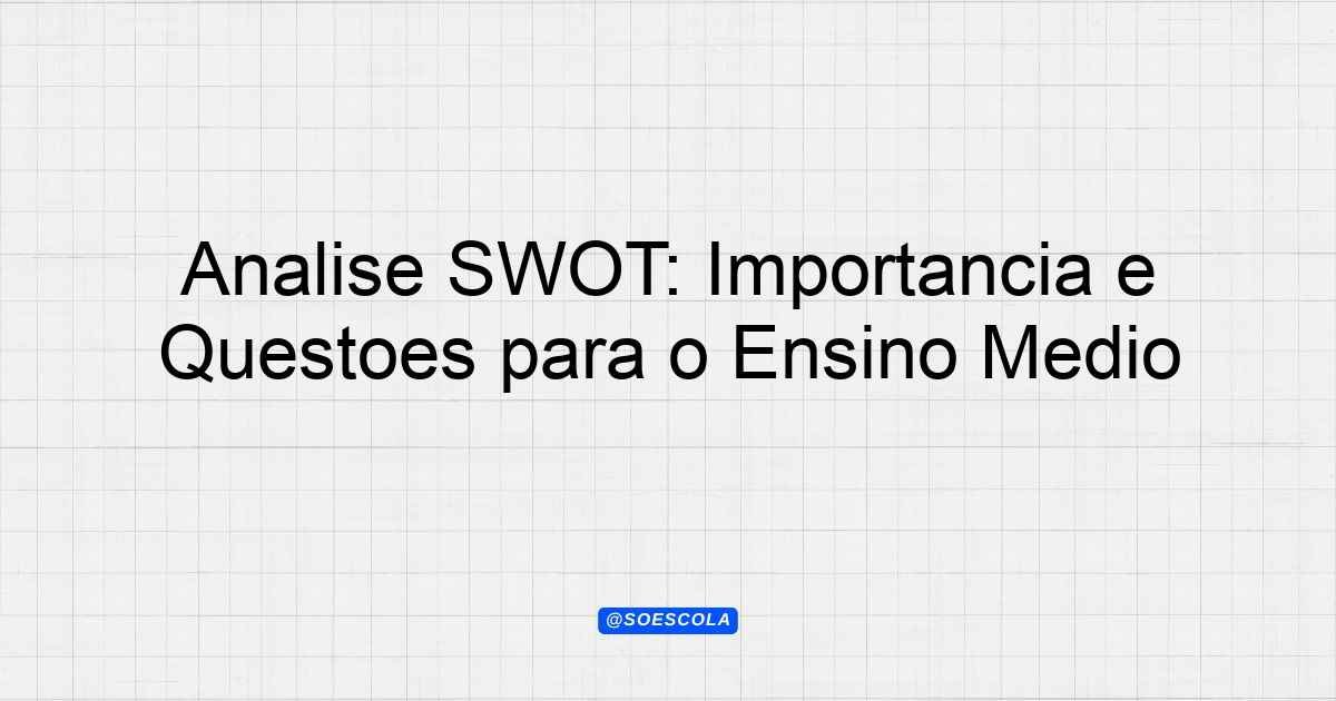 Continue lendoTema: Análise SWOT: Definição e ImportânciaEtapa/Série: 2º ano – Ensino MédioDisciplina: Formação Técnica e ProfissionalQuestões: 4 Prova: Análise SWOT –