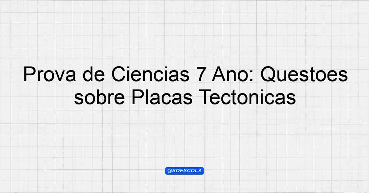 Continue lendoTema: Placas tectônicasEtapa/Série: 7º anoDisciplina: CiênciasQuestões: 15 Prova de Ciências – 7º Ano Tema: Placas Tectônicas Instruções: Leia atentamente cada