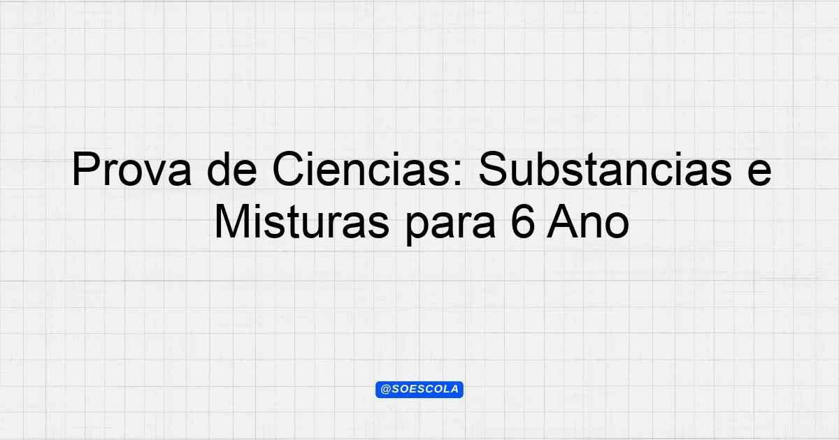 Continue lendoTema: Substâncias e misturasEtapa/Série: 6º anoDisciplina: CiênciasQuestões: 15 Prova de Ciências – 6º Ano Tema: Substâncias e Misturas Instruções: Responda