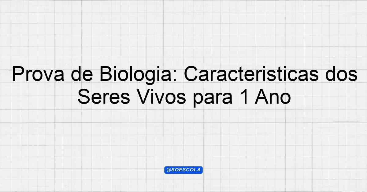 Continue lendoTema: Características básica dos seres vivosEtapa/Série: 3º ano – Ensino MédioDisciplina: BiologiaQuestões: 5 Prova de Biologia – 3º Ano do