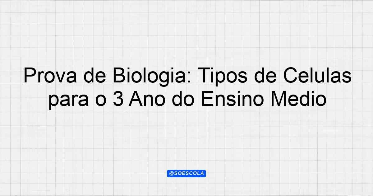 Continue lendoTema: tipos de célulasEtapa/Série: 3º ano – Ensino MédioDisciplina: BiologiaQuestões: 1 Prova de Biologia: Tipos de Células Instruções Leia atentamente