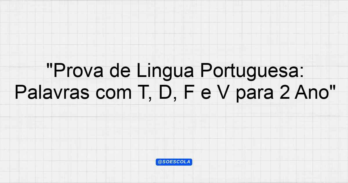 Continue lendoTema: palavras com T e D ou F e VEtapa/Série: 2º anoDisciplina: Língua PortuguesaQuestões: 7 Prova de Língua Portuguesa –