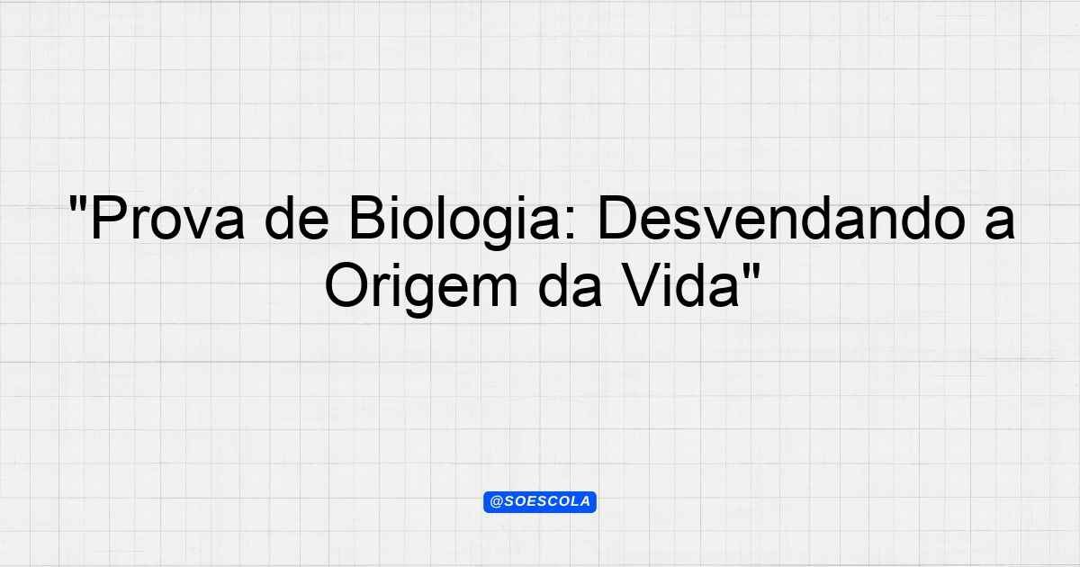 Continue lendoTema: origem da vidaEtapa/Série: 1º ano – Ensino MédioDisciplina: BiologiaQuestões: 10 Prova de Biologia – Origem da Vida — Instruções: