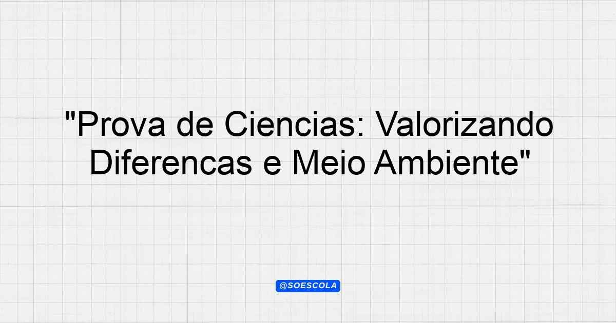 Continue lendoTema: valorizando as diferenças, quem sou eu?, o meio ambienteEtapa/Série: 1º anoDisciplina: CiênciasQuestões: 7 Prova de Ciências – 1º Ano
