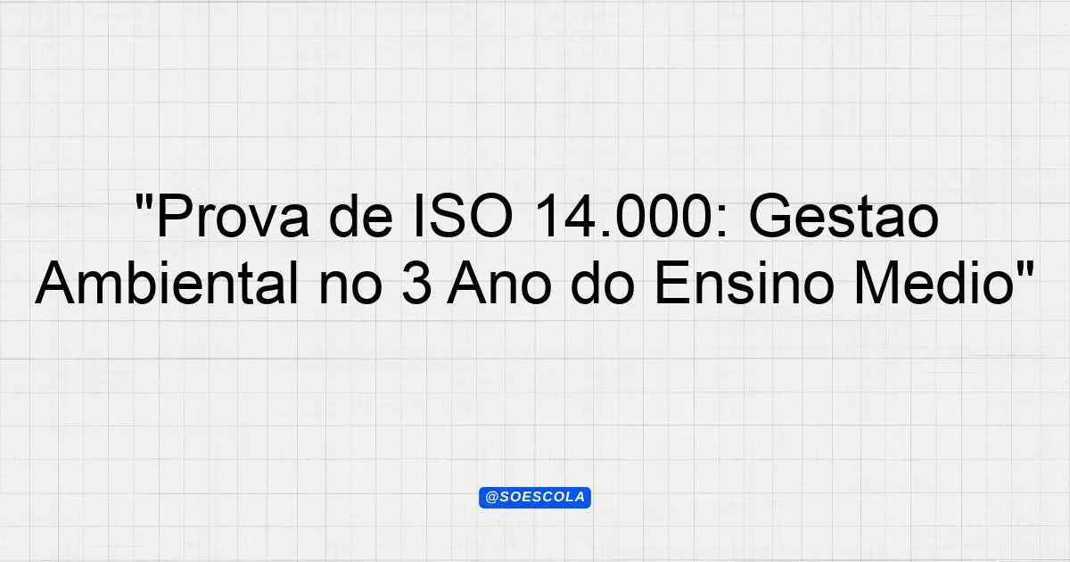 Continue lendoTema: iso 14.000Etapa/Série: 3º ano – Ensino MédioDisciplina: Formação Técnica e ProfissionalQuestões: 5 Prova de Formação Técnica e Profissional –