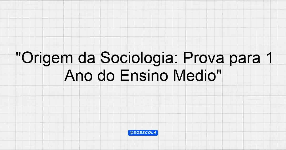 Continue lendoTema: origem da sociologiaEtapa/Série: 1º ano – Ensino MédioDisciplina: SociologiaQuestões: 1 Prova de Sociologia – 1º Ano Ensino Médio Tema: