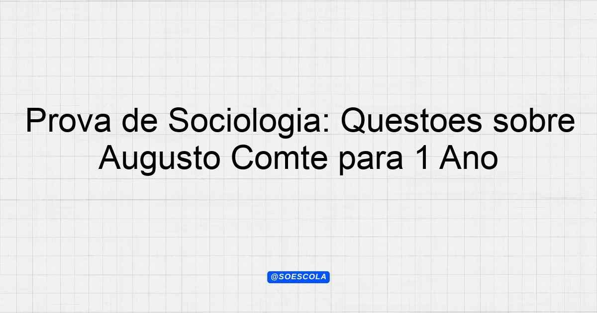 Continue lendoTema: augusto comteEtapa/Série: 1º ano – Ensino MédioDisciplina: SociologiaQuestões: 5 Prova de Sociologia – 1º Ano do Ensino Médio Tema: