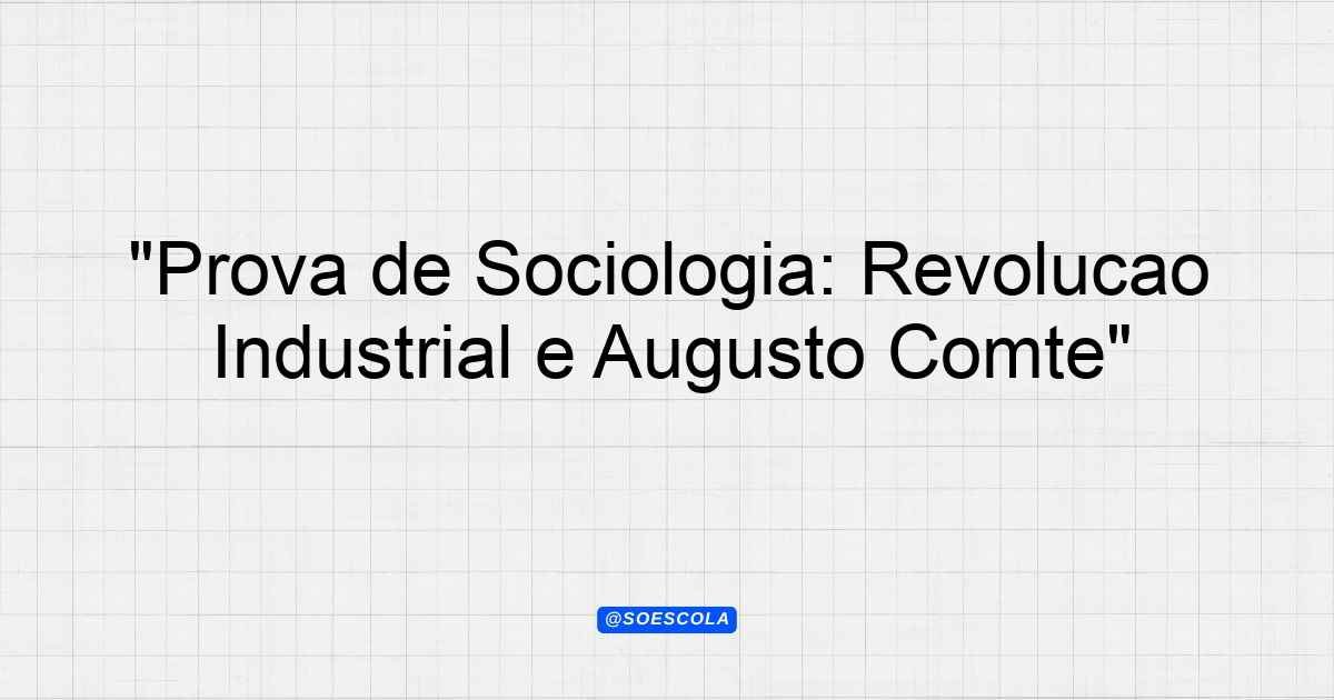 Continue lendoTema: revolução industrial, origem da sociologia e Augusto comteEtapa/Série: 1º ano – Ensino MédioDisciplina: SociologiaQuestões: 5 Prova de Sociologia –