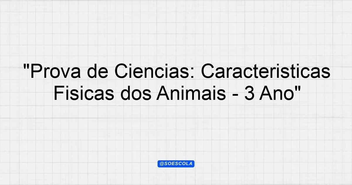 Continue lendoTema: CARACTERISTICAS FISICAS DO ANIMAIS,Etapa/Série: 3º anoDisciplina: CiênciasQuestões: 10 Prova de Ciências – 3º Ano Tema: Características Físicas dos Animais