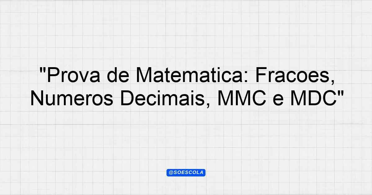 “Prova de Matemática: Frações, Números Decimais, MMC e MDC”