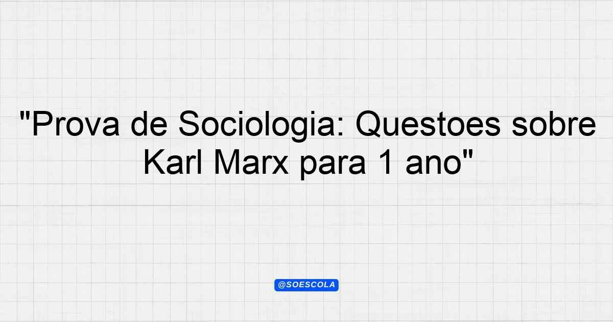 Continue lendoTema: karl marxEtapa/Série: 1º ano – Ensino MédioDisciplina: SociologiaQuestões: 10 Prova de Sociologia: Karl Marx Instruções: Leia as questões com