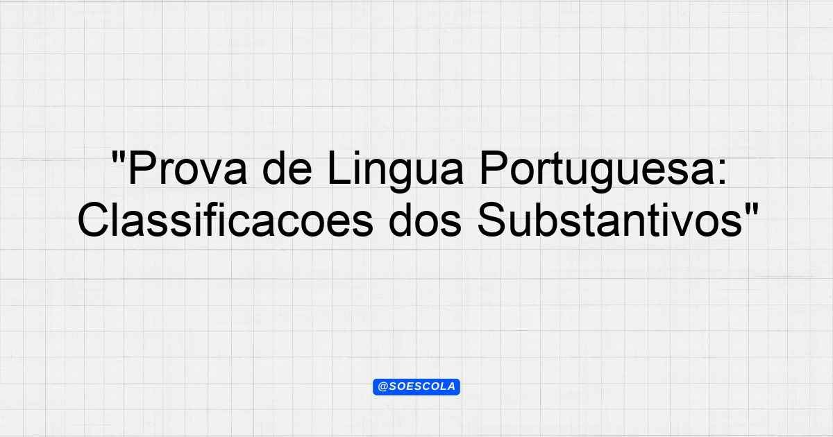 Continue lendoTema: Classificações dos substantivosEtapa/Série: 7º anoDisciplina: Língua PortuguesaQuestões: 20 Prova de Língua Portuguesa – 7º Ano Tema: Classificações dos Substantivos