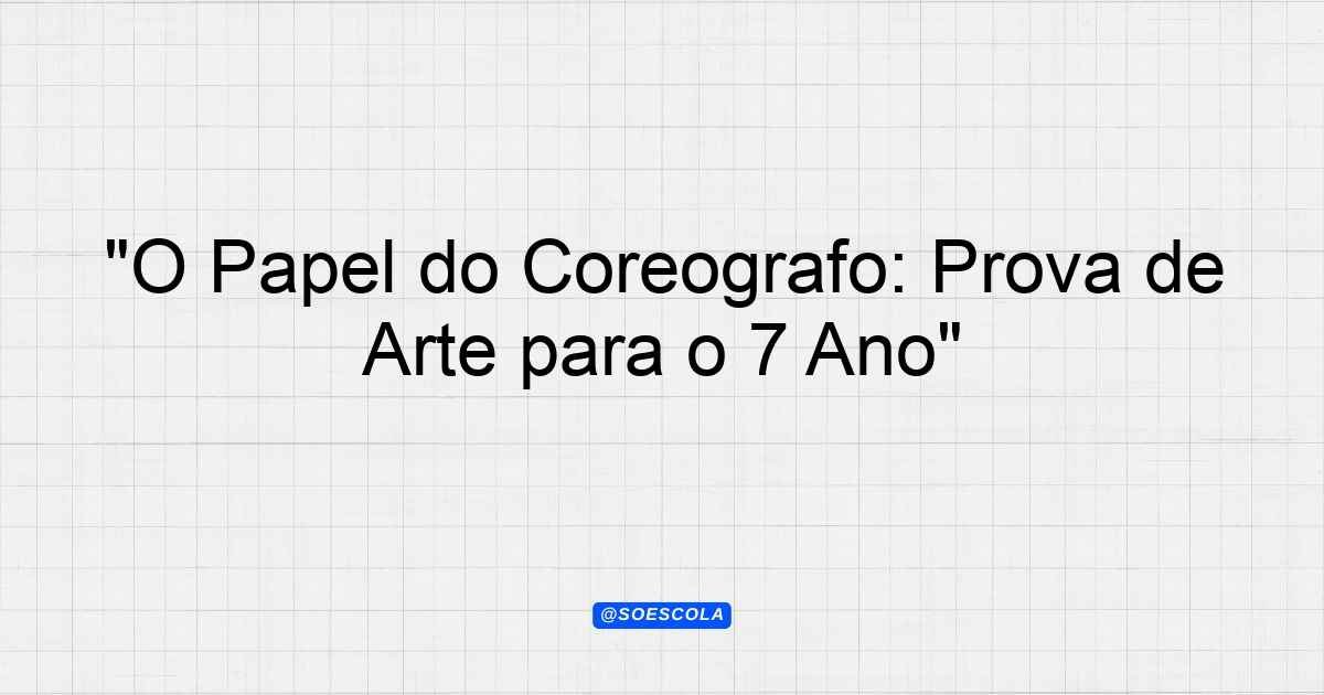 Continue lendoTema: O papel do coreógrafoEtapa/Série: 7º anoDisciplina: ArteQuestões: 10 Prova de Arte – 7º Ano Tema: O Papel do Coreógrafo