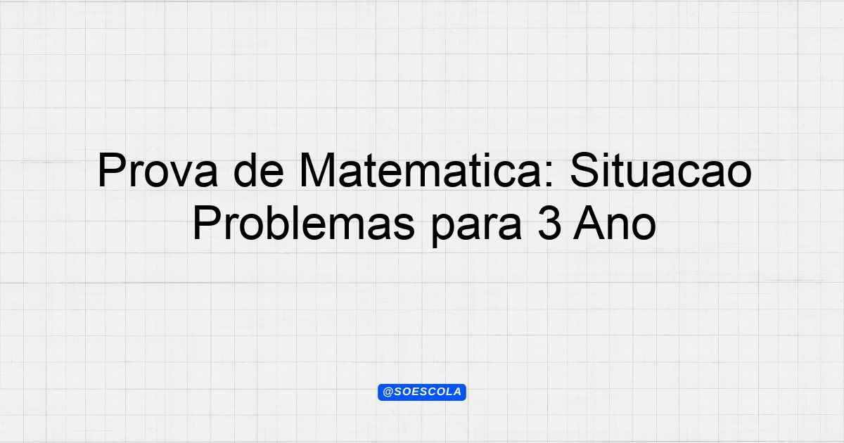 Continue lendoTema: Situação problemasEtapa/Série: 3º anoDisciplina: MatemáticaQuestões: 5 Prova de Matemática: Situação Problemas – 3º Ano Instruções: Leia atentamente cada situação