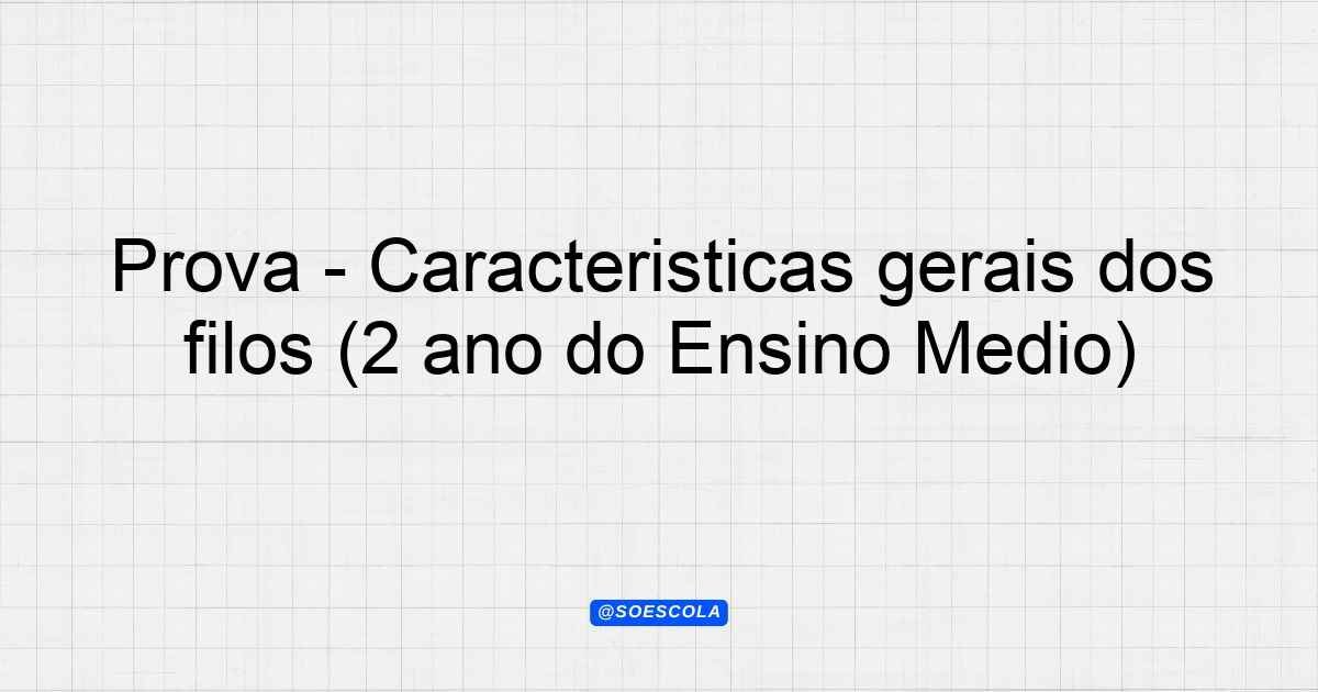 Continue lendoTema: Características gerais dos filosEtapa/Série: 2º ano – Ensino MédioDisciplina: BiologiaQuestões: 10 Prova de Biologia – 2º Ano do Ensino
