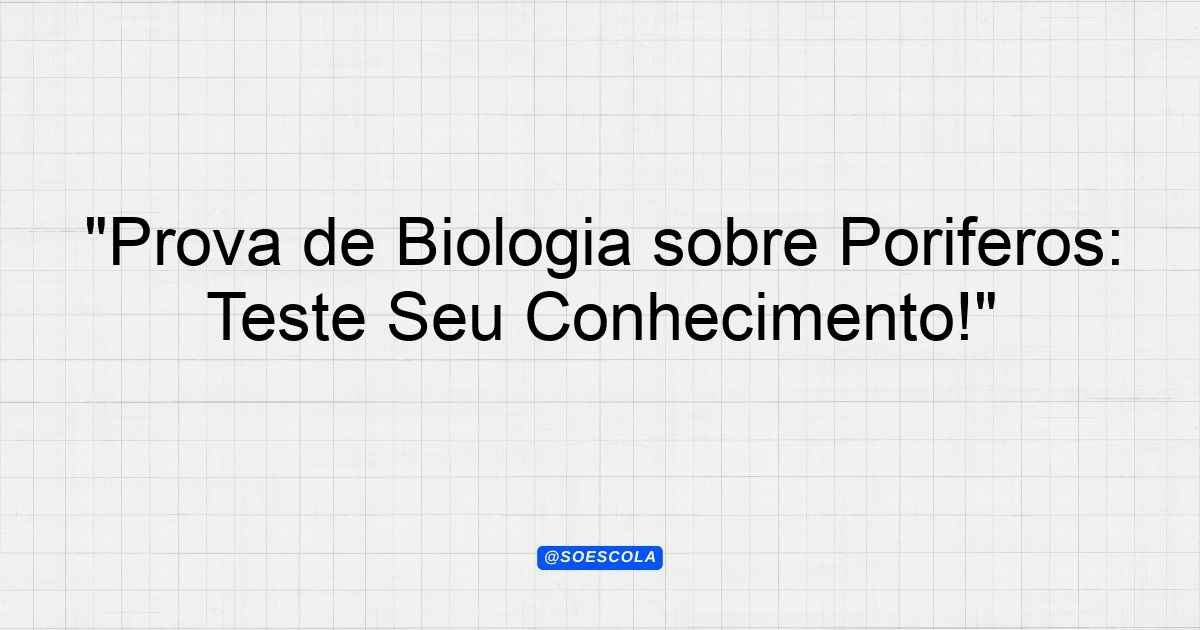 Continue lendoTema: PoríferosEtapa/Série: 2º ano – Ensino MédioDisciplina: BiologiaQuestões: 10 Prova de Biologia – Tema: Poríferos Alunos do 2º ano –