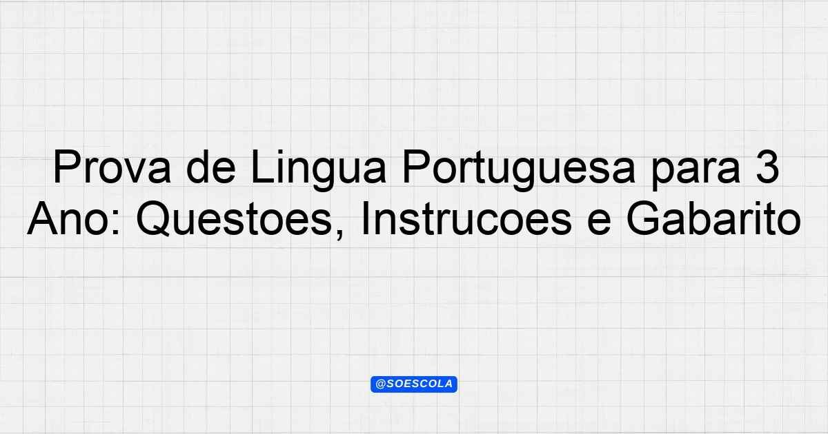 Continue lendoTema: Língua portuguesaEtapa/Série: 3º anoDisciplina: Língua PortuguesaQuestões: 10 Prova de Língua Portuguesa – 3º Ano Nome do Aluno: _______________________________________ Data: