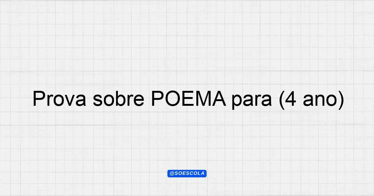 Continue lendoTema: POEMA Etapa/Série: 4º ano Disciplina: Língua Portuguesa Questões: 10 Prova de Língua Portuguesa – Tema: POEMA Aluno(a):_____________________ Data:______/______/______