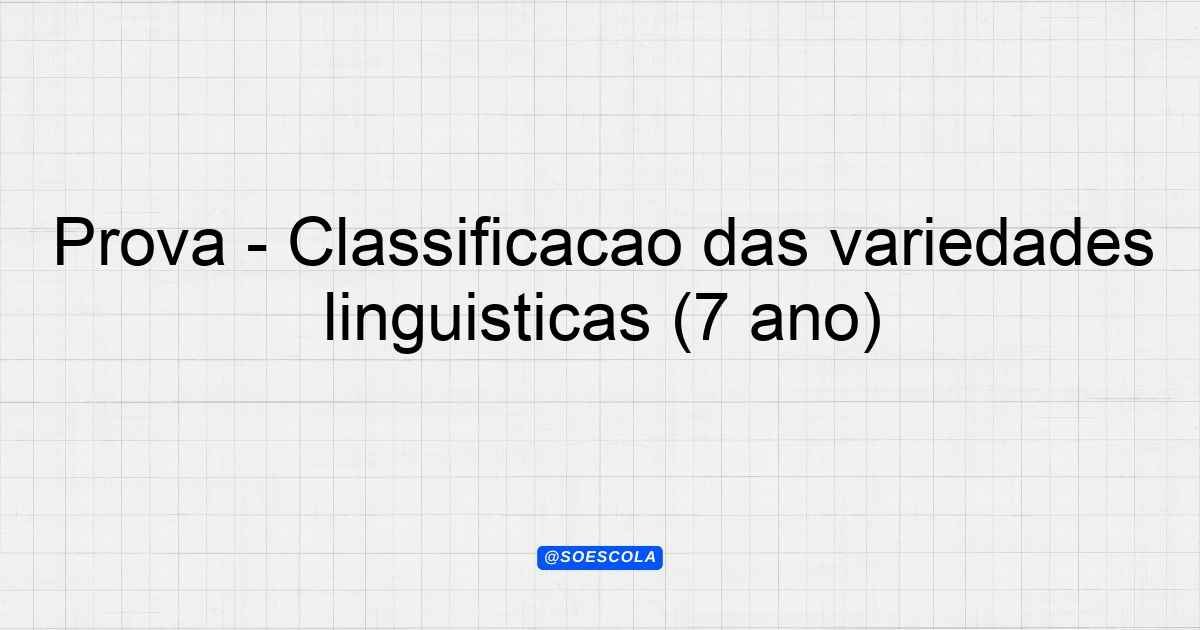 Continue lendoTema: Classificação das variedades linguísticasEtapa/Série: 7º anoDisciplina: Língua PortuguesaQuestões: 10 Prova de Língua Portuguesa – 7º Ano Tema: Classificação das