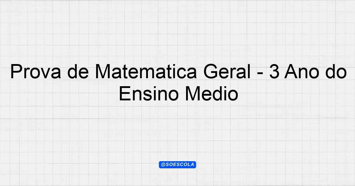 Continue lendoTema: MATEMATICA GERAL Etapa/Série: 3º ano – Ensino Médio Disciplina: Matemática Questões: 4 Prova de Matemática Geral – 3º Ano