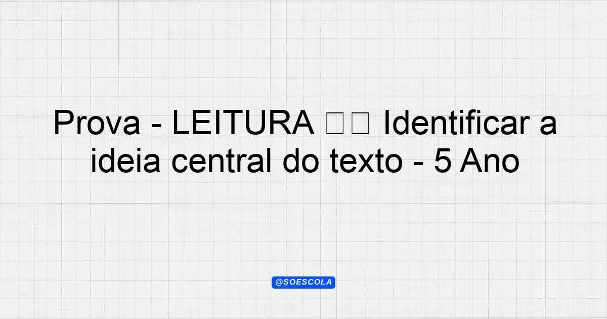 Continue lendoTema: LEITURA – Identificar a ideia central do texto Etapa/Série: 5º ano Disciplina: Língua Portuguesa Questões: 10 Prova de Língua
