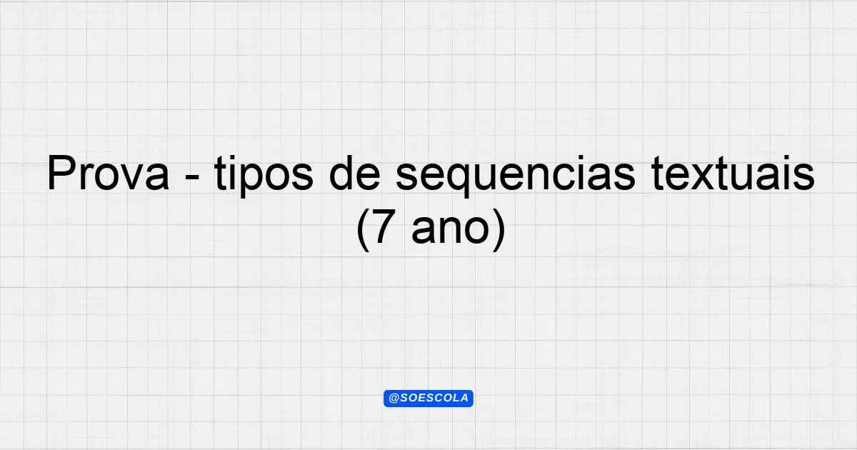 Continue lendoTema: tipos de sequências textuaisEtapa/Série: 7º anoDisciplina: Língua PortuguesaQuestões: 10 Prova de Língua Portuguesa – 7º Ano Tema: Tipos de