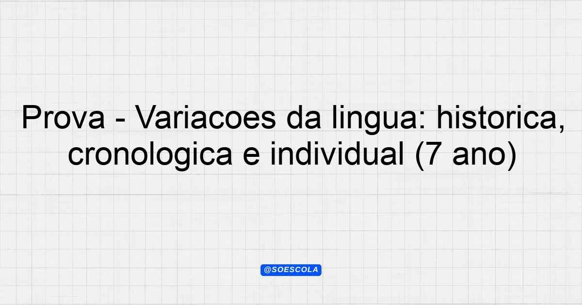 Continue lendoTema: Variações da língua: histórica, cronológica e individualEtapa/Série: 7º anoDisciplina: Língua PortuguesaQuestões: 15 Prova de Língua Portuguesa – 7º Ano