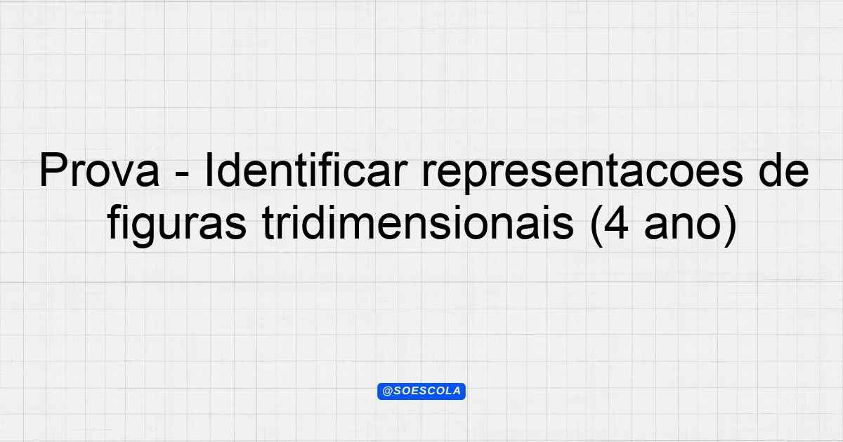 Continue lendoTema: Identificar representações de figuras tridimensionaisEtapa/Série: 4º anoDisciplina: MatemáticaQuestões: 4 Prova de Matemática – 4º Ano Tema: Identificar Representações de