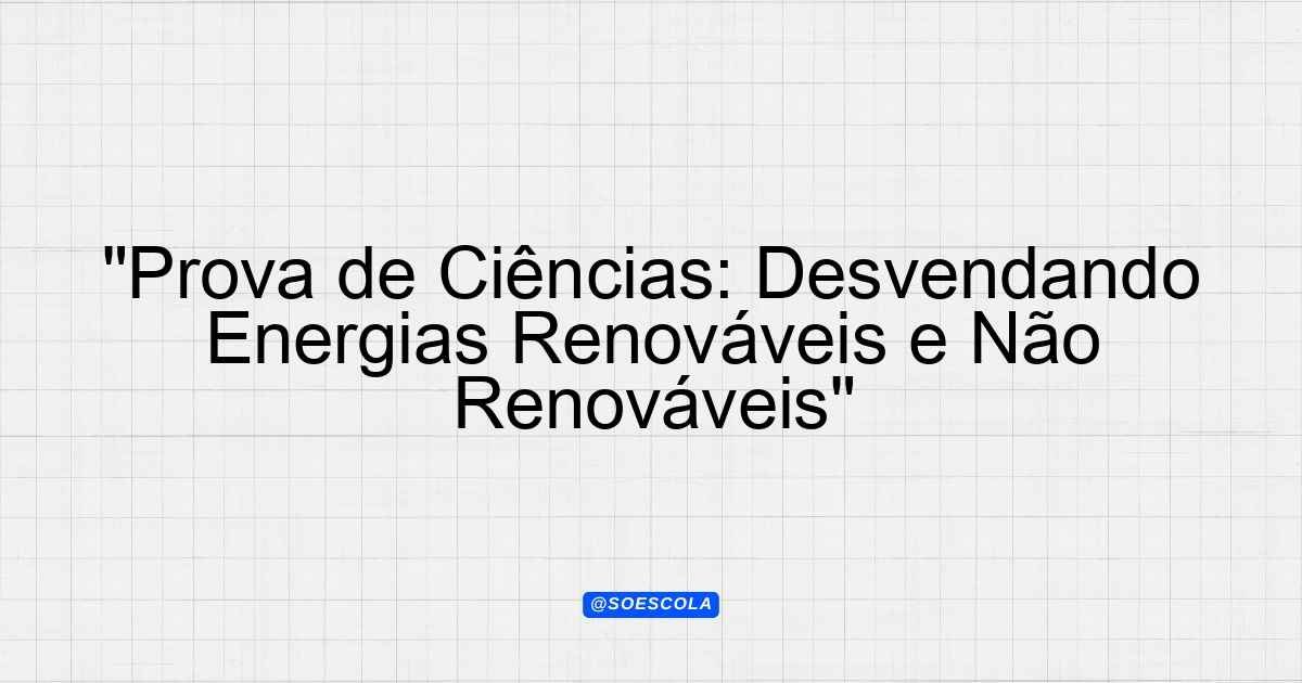 “Prova de Ciências: Desvendando Energias Renováveis e Não Renováveis”