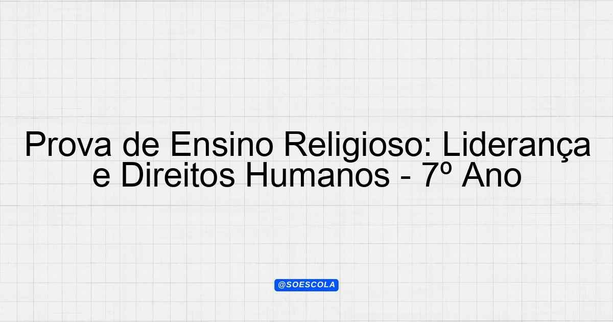 Continue lendoTema: Liderança e direitos humanosEtapa/Série: 7º anoDisciplina: Ensino ReligiosoQuestões: 20 Prova de Ensino Religioso – 7º Ano Tema: Liderança e