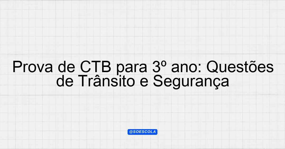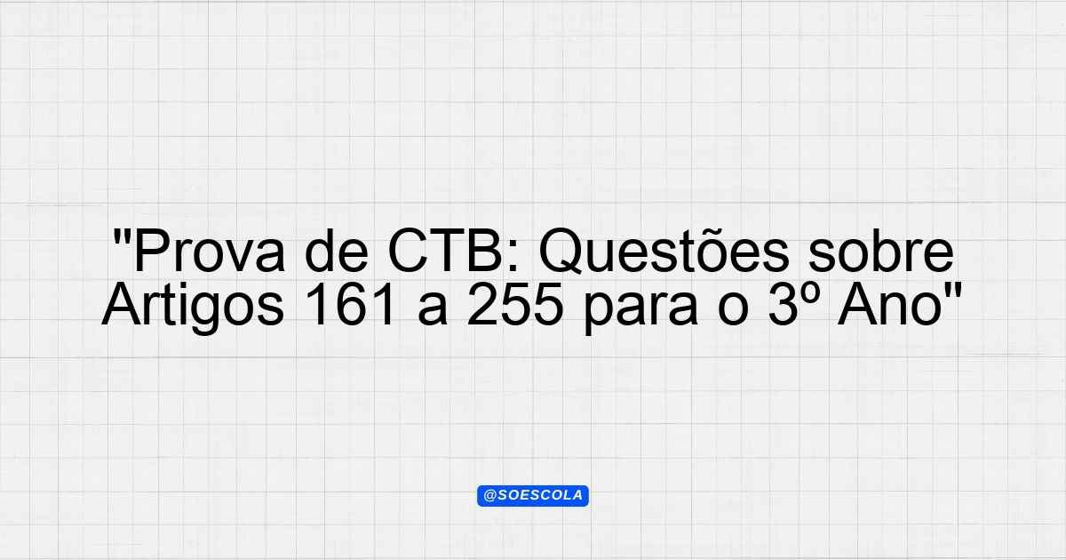 Continue lendoTema: CTB ARTIGO 161 ATÉ 255Etapa/Série: 3º ano – Ensino MédioDisciplina: Formação Técnica e ProfissionalQuestões: 10 Prova – CTB Artigos