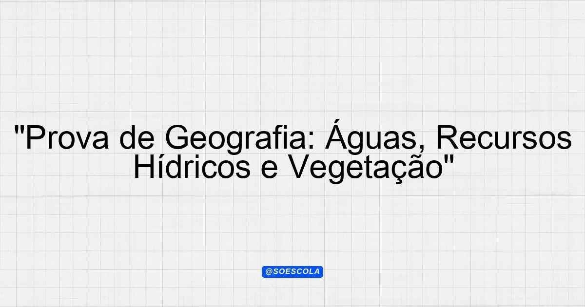 Continue lendoTema: Aguas e recursos hidricos, As grandes formaçoes vegetais do planetaEtapa/Série: 1º ano – Ensino MédioDisciplina: GeografiaQuestões: 10 Prova de