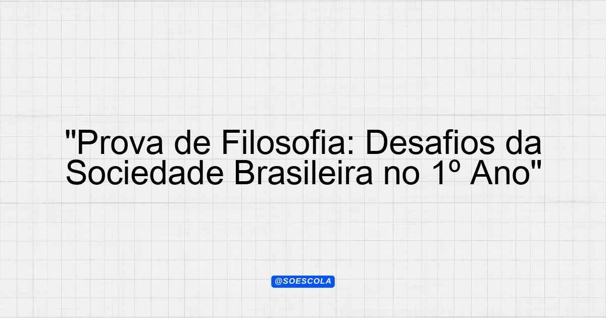 Continue lendoTema: Sociedade brasileiraEtapa/Série: 1º ano – Ensino MédioDisciplina: FilosofiaQuestões: 10 Prova de Filosofia – 1º Ano do Ensino Médio Tema: