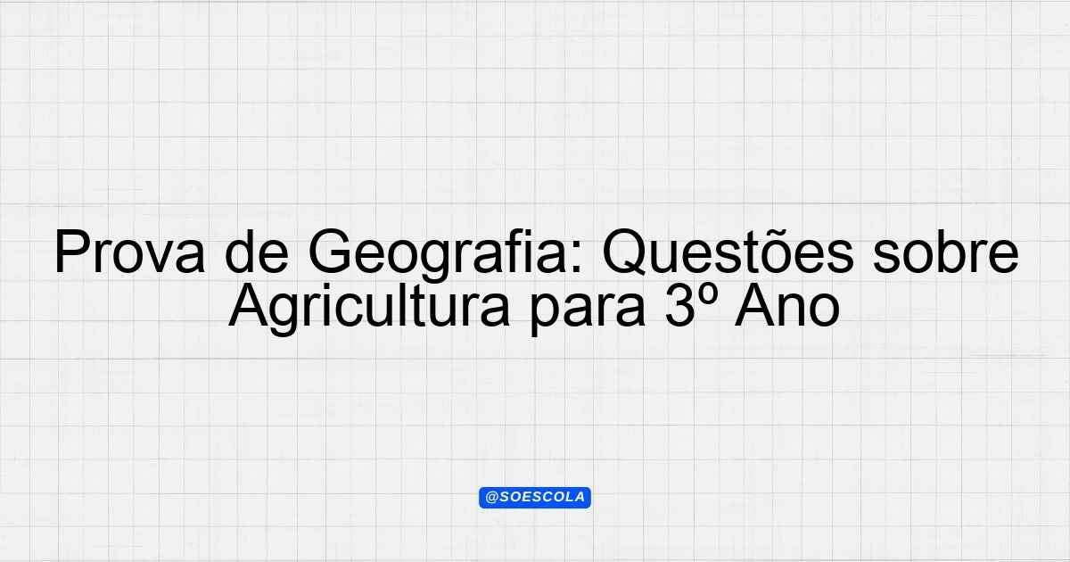 Continue lendoTema: a agriculturaEtapa/Série: 3º anoDisciplina: GeografiaQuestões: 2 Prova de Geografia – 3º Ano Tema: A Agricultura Instruções: Leia atentamente as