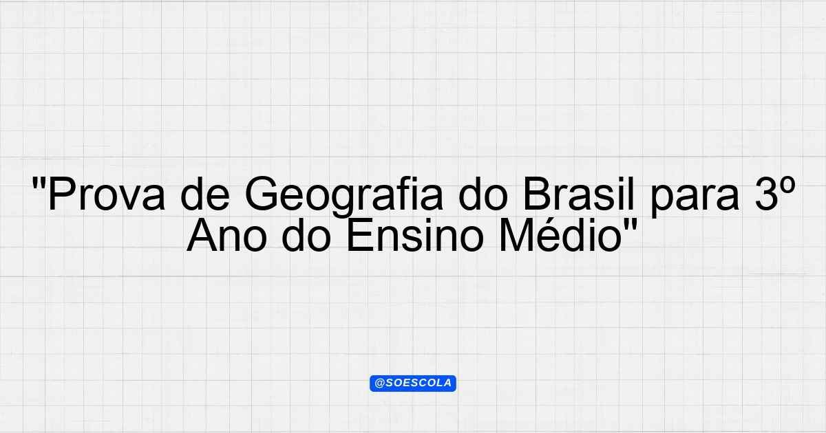Continue lendoTema: geografia do brasilEtapa/Série: 3º ano – Ensino MédioDisciplina: GeografiaQuestões: 20 Prova de Geografia do Brasil – 3º Ano do