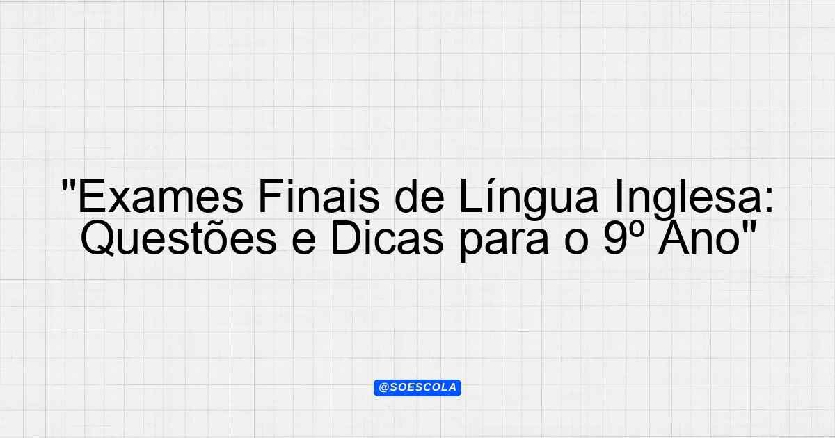 Continue lendoTema: Exames FinaisEtapa/Série: 9º anoDisciplina: Língua InglesaQuestões: 8 Prova de Língua Inglesa – 9º Ano Objetivo: Avaliar o conhecimento dos