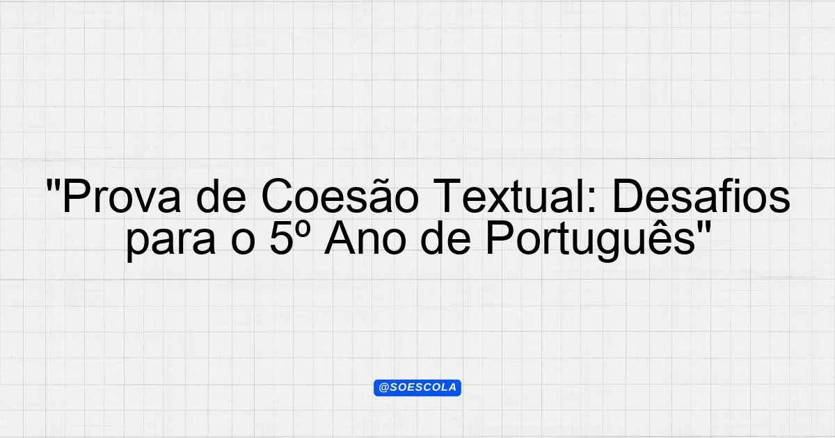 Continue lendoTema: Coesão textual em portuguêsEtapa/Série: 5º anoDisciplina: Língua PortuguesaQuestões: 6 Prova de Língua Portuguesa: Coesão Textual Nome do aluno: ______________________________________