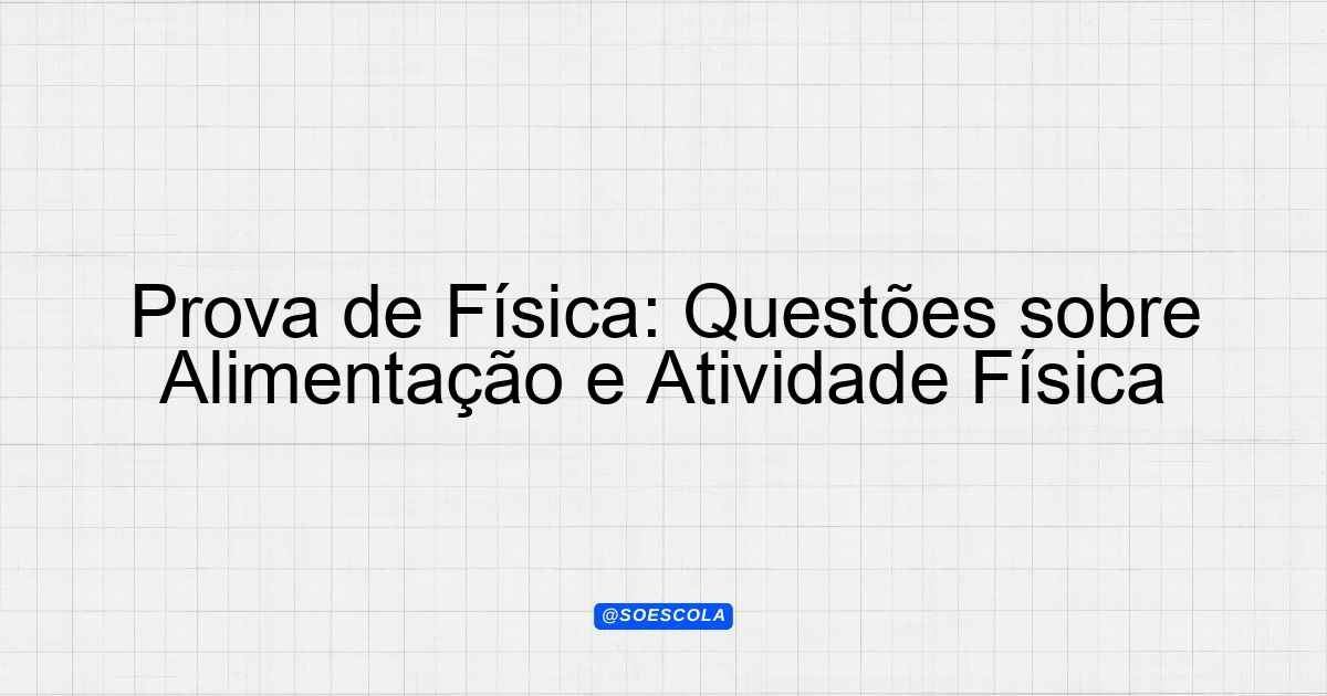 Continue lendoTema: ALIMENTAÇÃO E EDUCAÇÃO FÍSICAEtapa/Série: 3º anoDisciplina: FísicaQuestões: 10 Prova de Física: Alimentação e Educação Física Nome: ______________________ Data: ______________________
