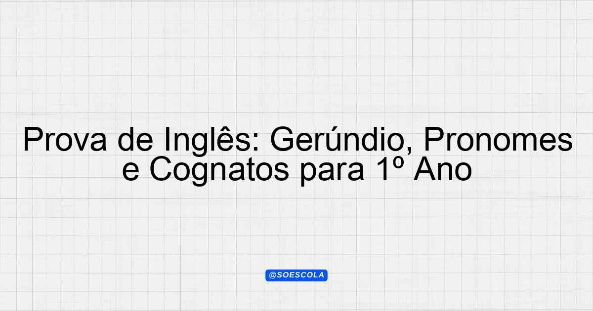 Continue lendoTema: Faça uma prova de inglês com os seguintes tópicos 1 Gerúndio- presente contínuo. 2 Pronomes pessoais, possessivos e possessivos