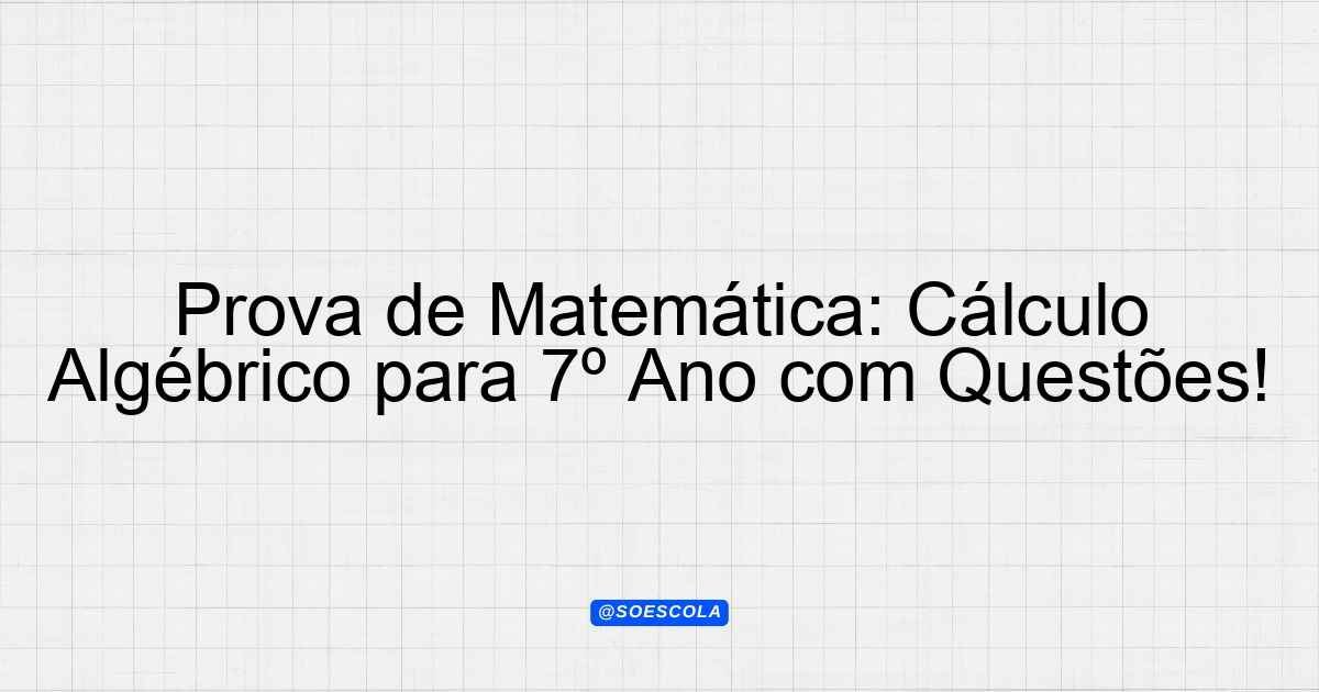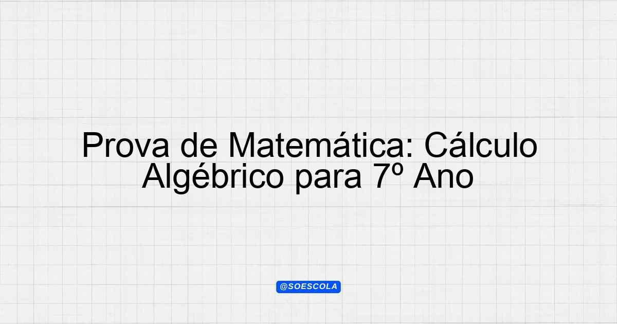 Continue lendoTema: cálculo algebricoEtapa/Série: 7º anoDisciplina: MatemáticaQuestões: 5 Prova de Matemática – 7º Ano Tema: Cálculo Algébrico Instruções: Responda às questões