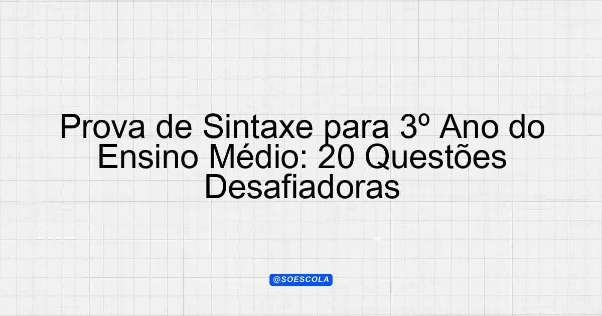 Continue lendoTema: SintaxeEtapa/Série: 3º ano – Ensino MédioDisciplina: Língua PortuguesaQuestões: 20 Prova de Língua Portuguesa – Sintaxe Aluno(a): ________________ Data: ________________