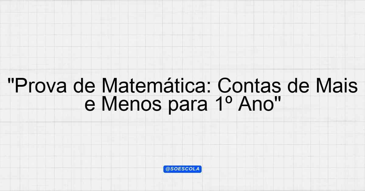 Continue lendoTema: CONTAS DE MAIS E MENOSEtapa/Série: 1º anoDisciplina: MatemáticaQuestões: 10 Prova de Matemática – 1º Ano Tema: Contas de Mais